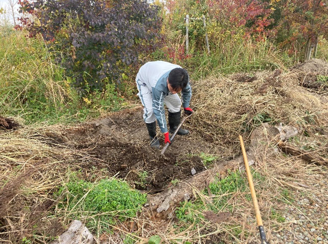 土壌生物や微生物が分解しやすい環境をつくることが重要です。