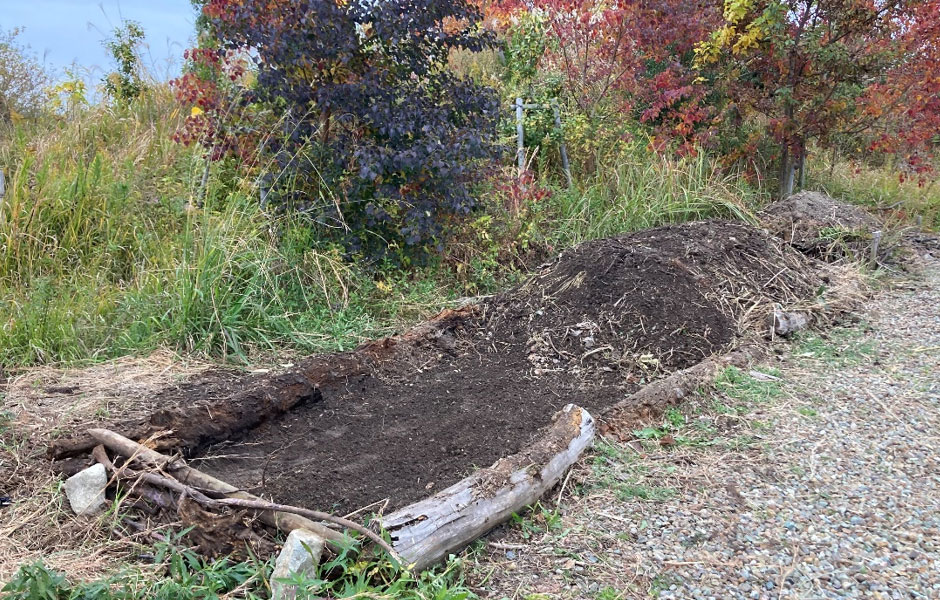 実は、草や枝はただ積んでいるだけではなかなか土には還りません。