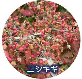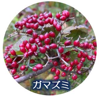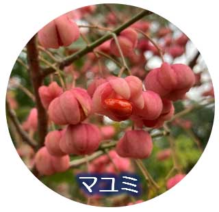 マユミ、ガマズミ、マサキ、ムラサキシキブ、クロガネモチ、エゴノキ、