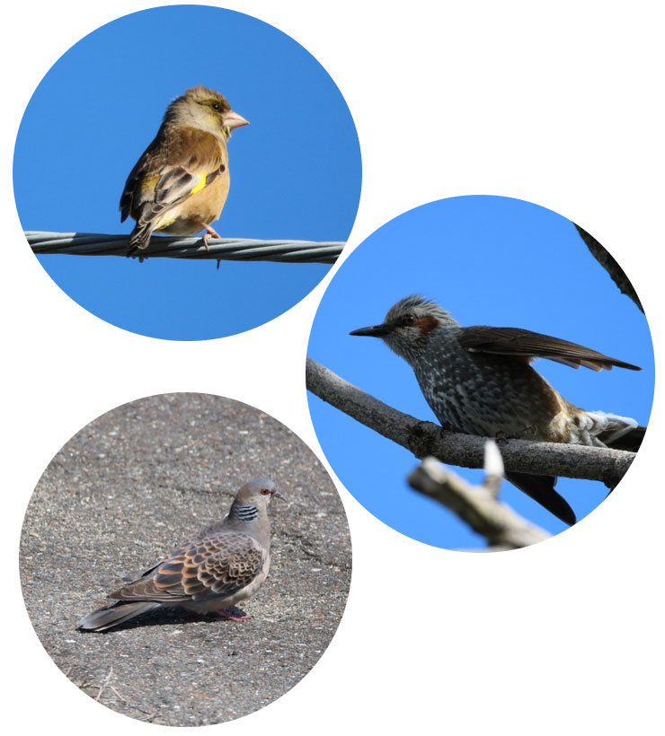 まずは、カワラヒワ、ヒヨドリ、キジバト