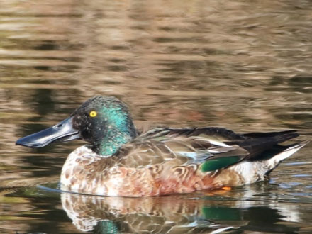 それでも分かるほどの“大きく幅広いくちばし”をもつのはハシビロガモ。