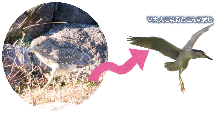 幼鳥の頃はからだに白い模様があることから、☆別名ホシゴイ☆とも呼ばれます。