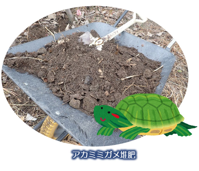 ここでも以前作成したアカミミガメ堆肥が大活躍!