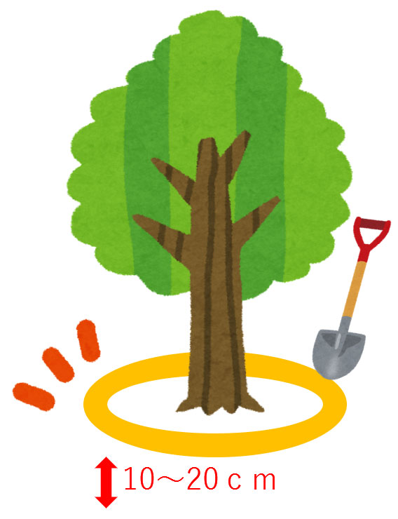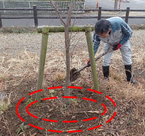 まず、寒肥を与える木の周りを