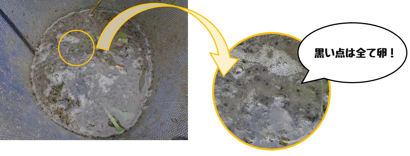 なんと、ウシガエルの卵を発見!