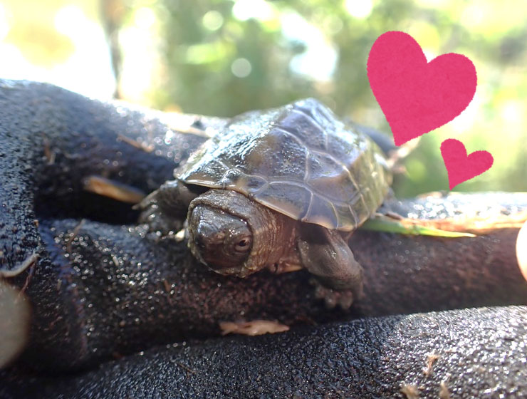 作業をしていると、“クサガメ”の赤ちゃんが出てきました!