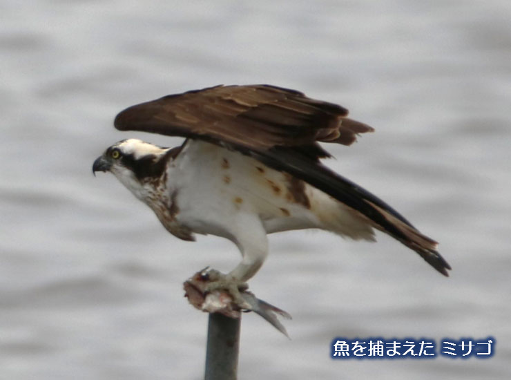 ミサゴは魚が大好物。鋭いカギ爪で獲物を捕まえ、安全な場所へ運ぶ習性があります。