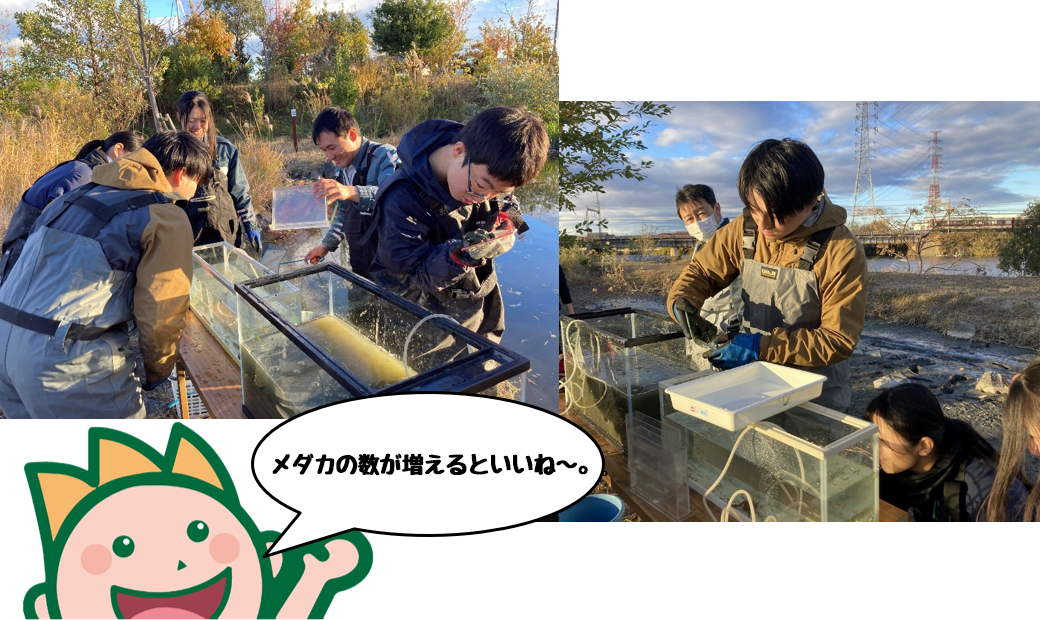 在来種のモツゴやメダカ、ヤゴが住める環境を整えます。
