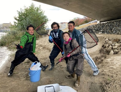 イベント前日には環境課メンバーが福岡入りし、本格的に現地調査&生き物捕獲開始。