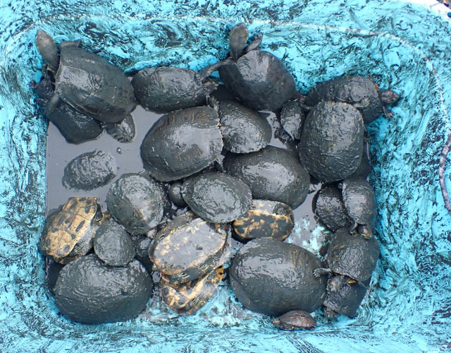 大量に捕獲しましたが、条件付き特定外来生物に指定されているため駆除対象です。