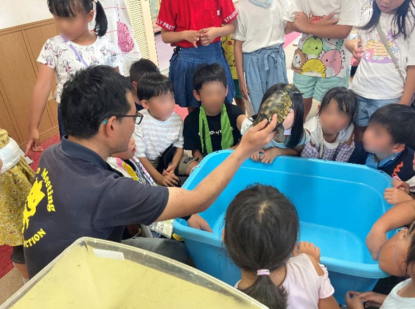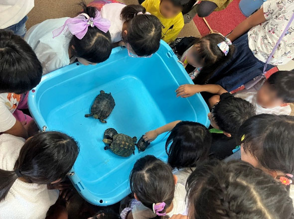 中にはカメにとても詳しい子もいて、こちらが説明する前にカメについて教えてくれる子もいました🐢