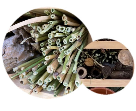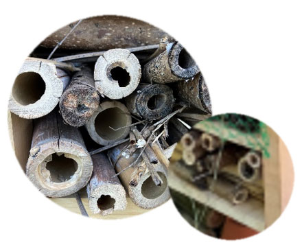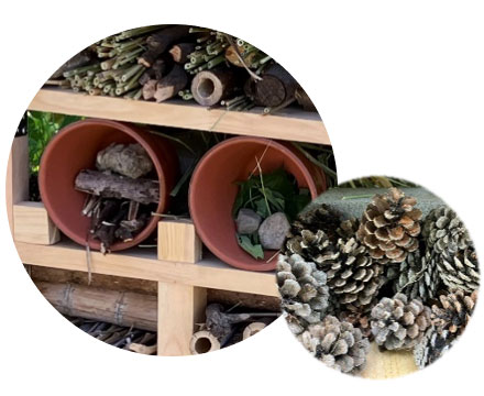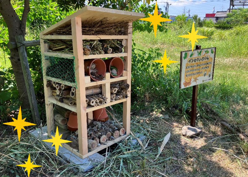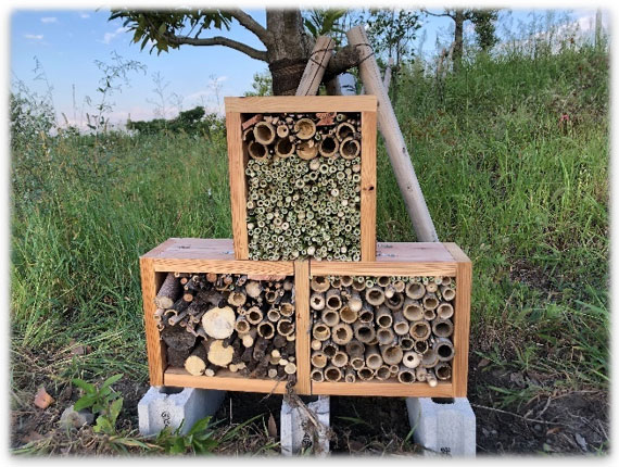 “インセクトホテル”“バグホテル”ともよばれ、欧州が発祥の、昆虫などが過ごしやすい住処や安心して冬眠のできる場所を提供するために人工的に作られた施設です。
