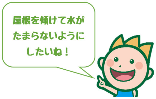 屋根を傾けて水がたまらないようにすることで、長持ちするように工夫しました。