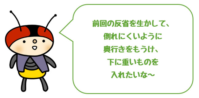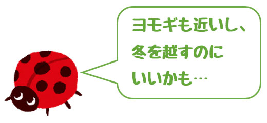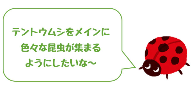 この段ではテントウムシをターゲットとし、集団で冬を暖かく越せるようなつくりにしました。