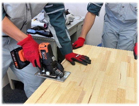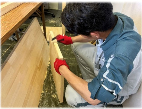 設計図通りの大きさに木を切り、断面をやすりで整えます。