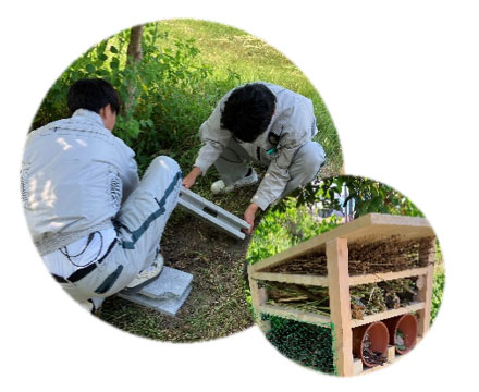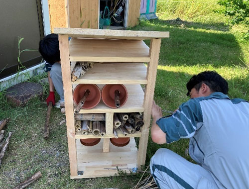 そこで、今年入社の新入社員と一緒に新たなインセクトマンションを作成しました!