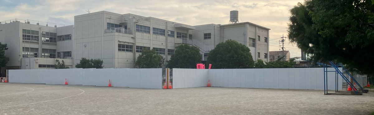 実際の様子がこちら。校庭に面した仮囲いパネル。