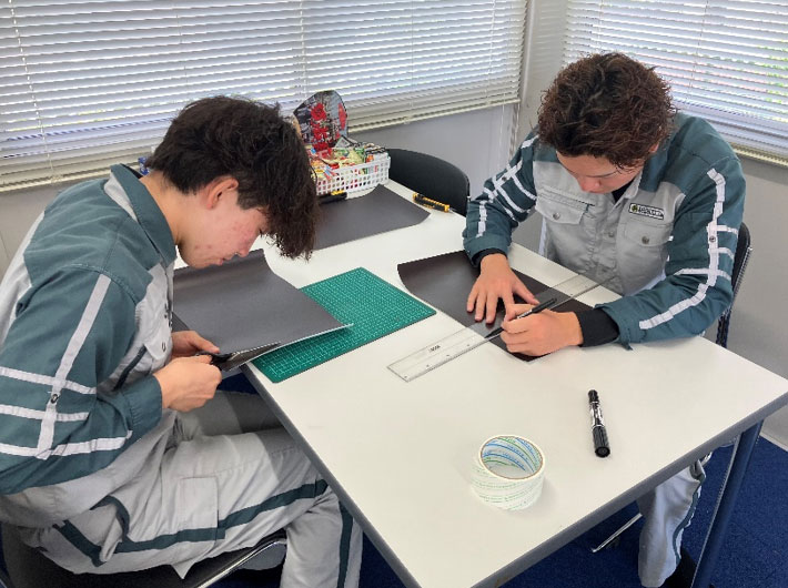カットした掲示物をマグネットシートに貼り付けます。