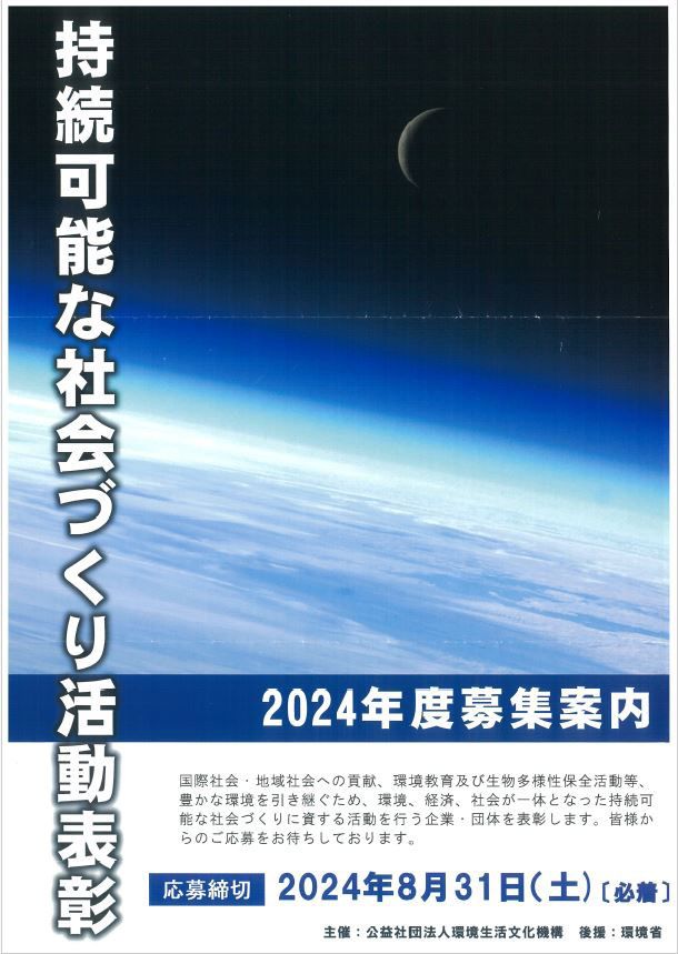 この表彰は、持続可能な社会づくり推進のため、社会貢献や環境教育、環境保全などを行う企業・団体の活動を広く発信し、民間の環境活動の活性化を促す目的で、毎年開催されており、今年で9回目となります。