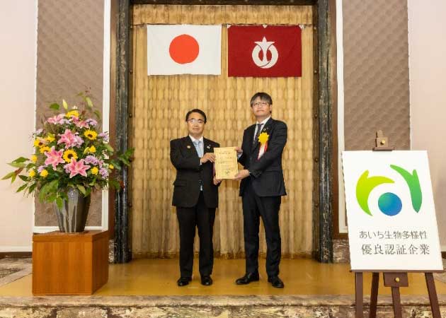 この度当社はあいち生物多様性企業認証制度(愛知県)に基づき、「あいち生物多様性優良認証企業」に認証されました。
