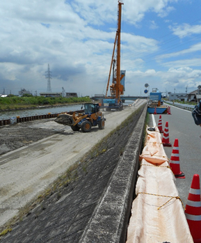 ここの現場は地震が来た時、堤防が壊れないように補強工事をしていました。