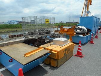 この現場は日光川水閘門の護岸に設置する“のり面ブロック”を作っていました。