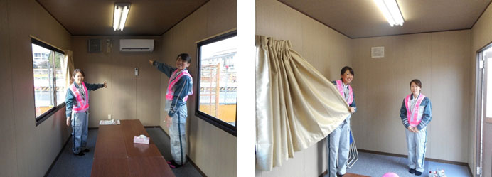 愛知県海部郡飛島村にある堤防改良工事をしている現場の休憩所を