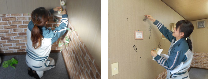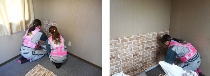 壁にレンガ柄のシールを張って 雰囲気をガラリとチェンジ(^O^)/