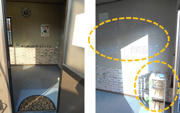 奥にあるアイアンラティスには可愛いサボテンやリースを飾りました。