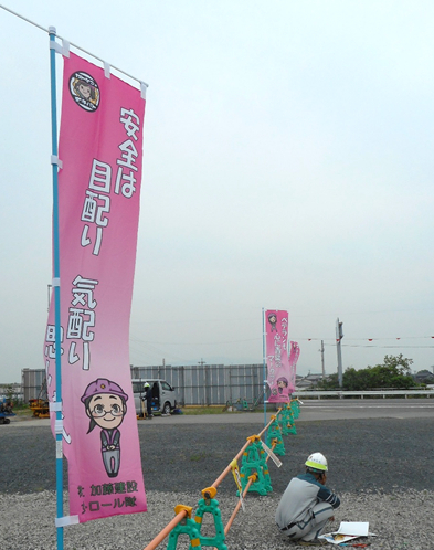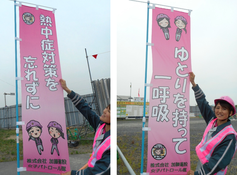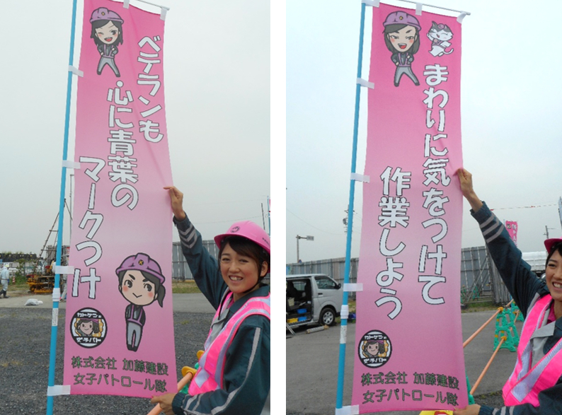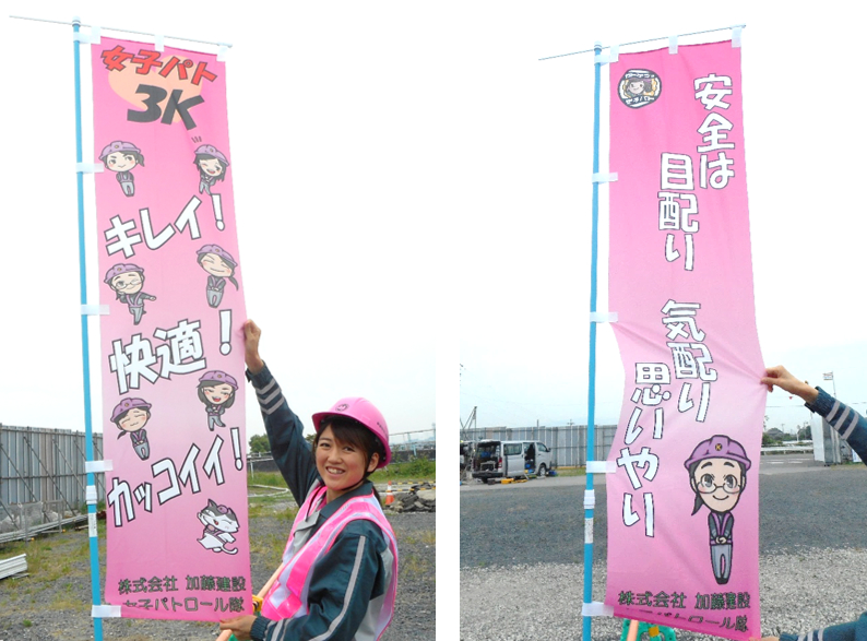 女子パト隊が作ったのぼり旗を