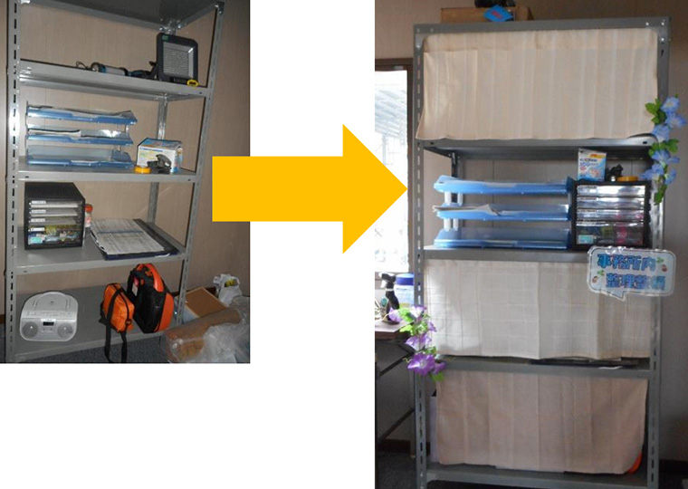 使う頻度の高い段にはカーテンを付けず