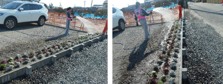 ここの現場は事務所のコーディネートや公民館の飾り付けや花壇にお花を植えたりと