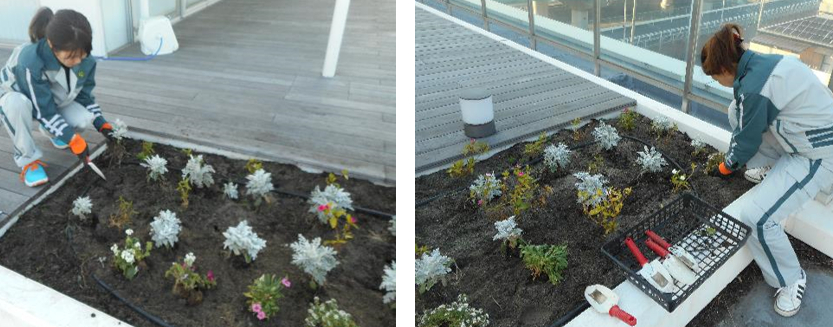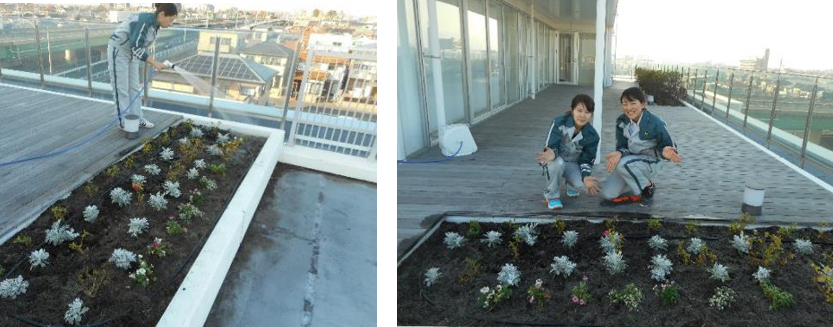 そして余ったお花はまた本社屋上の花壇に移設することに♪