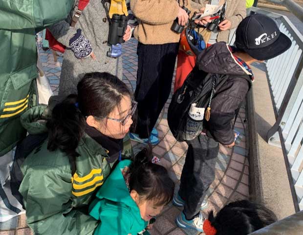 準備、受付、双眼鏡の使い方や参加者の皆さんの誘導、