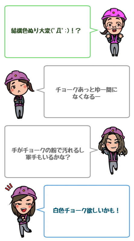 チョーク? クレヨン?・・・何が描きやすいか模索しながらカキカキ…♪