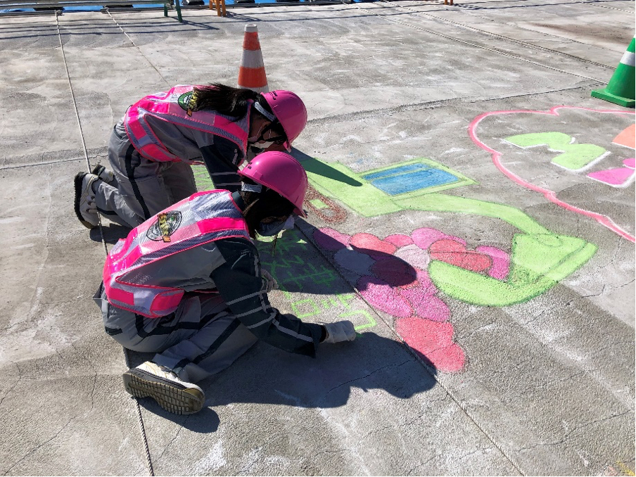 チョークで描いたので雨が降ったら消えてしまうかなー(^-^;