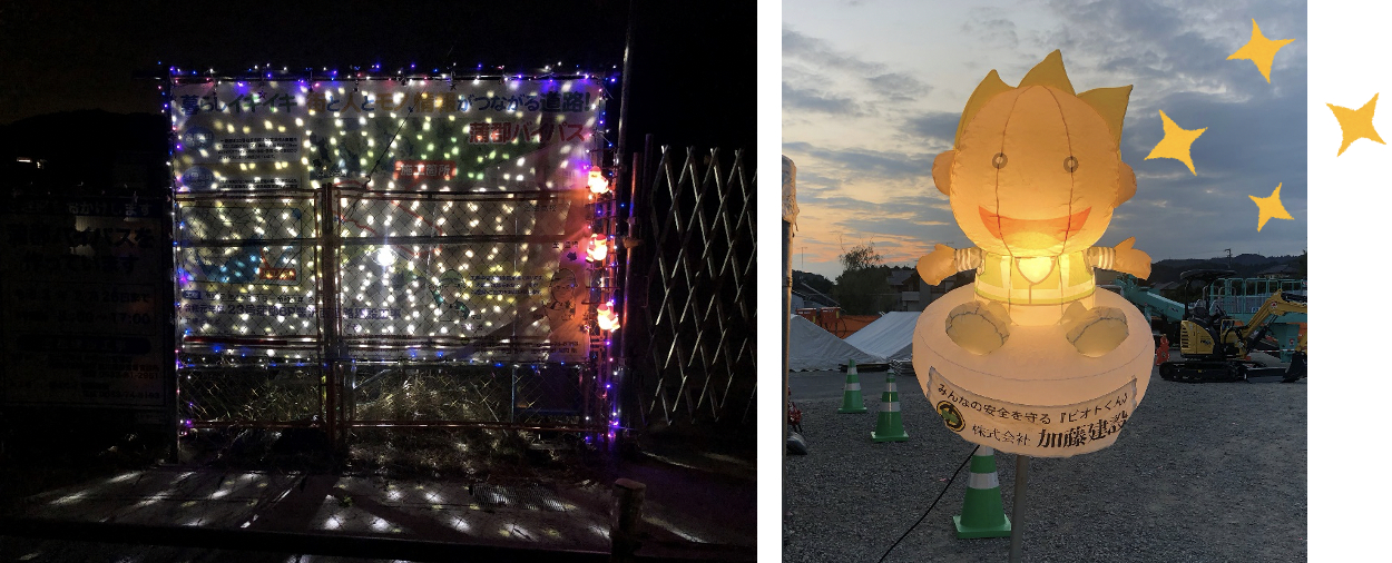 今回はイルミネーションの設置と体験ブースの装飾ということで
