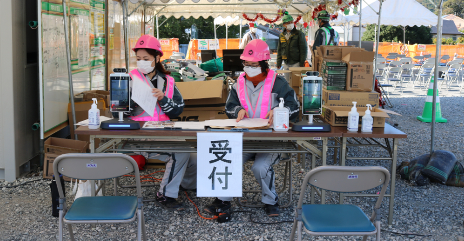 受付では、アルコール消毒はもちろん、非接触型体温測定も実施!!