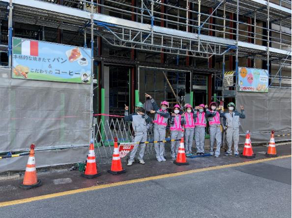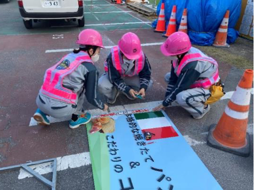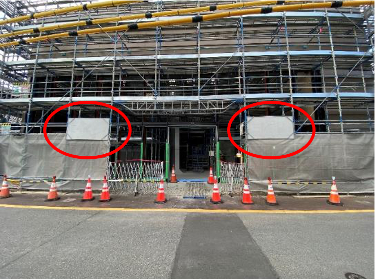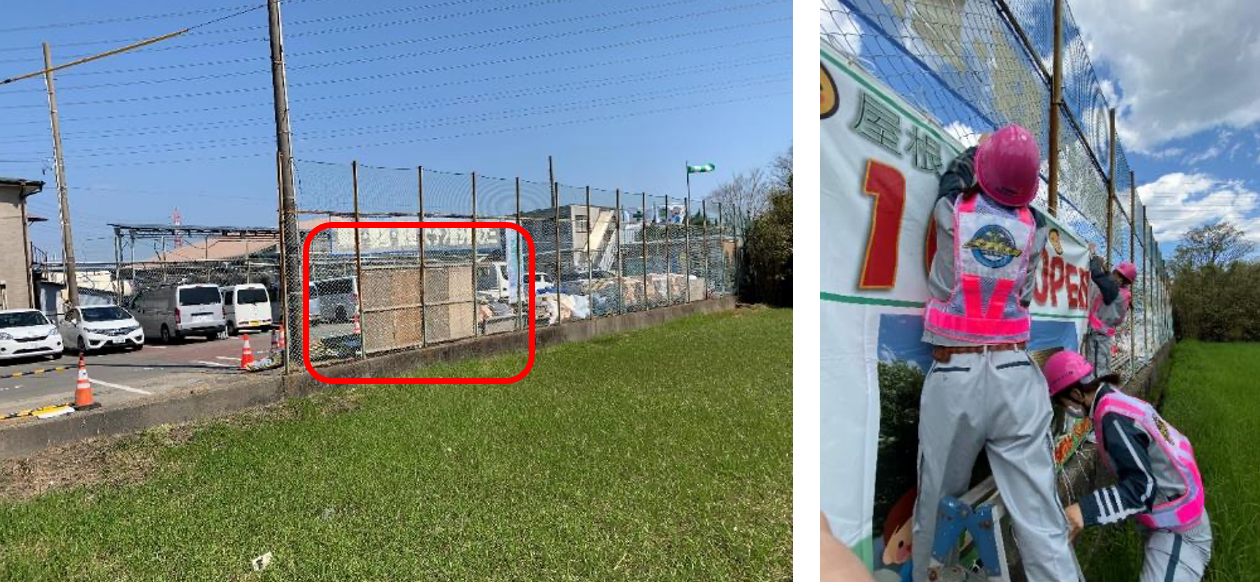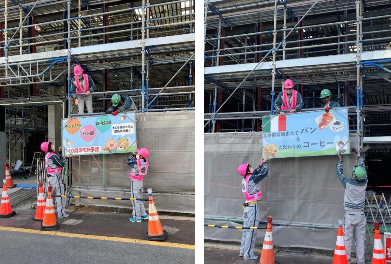 次に、建設中の施設の足場に看板を設置しました。