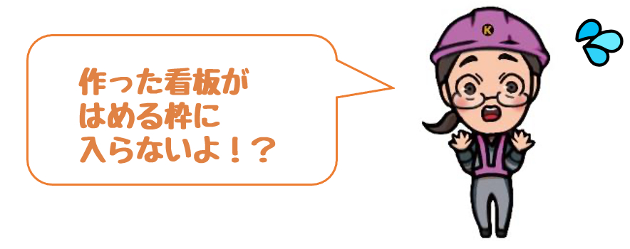 看板のサイズを間違って発注してしまい、枠に収まらないというハプニング!