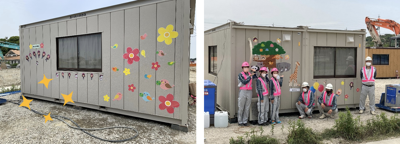 それから、加藤建設の休憩所にも目立つようにマグネットをたくさん貼りました✨