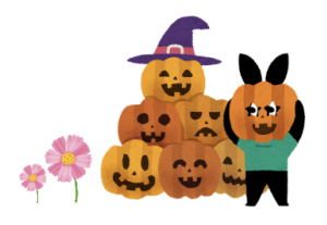 ハロウィンや秋仕様の装飾品を飾り、