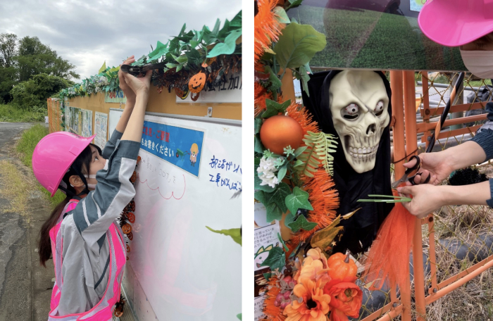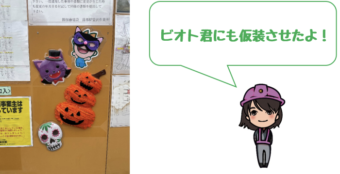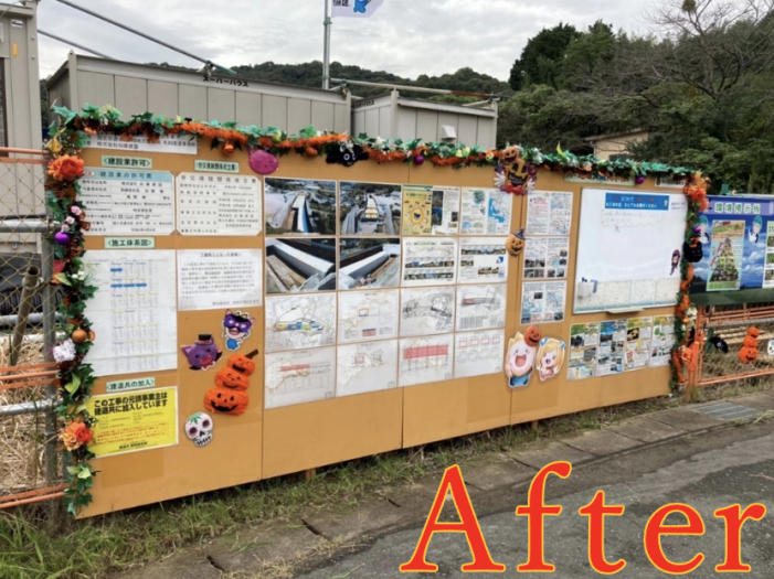 「施工体制及び地域交流掲示板」があっという間にハロウィン仕様に変身!