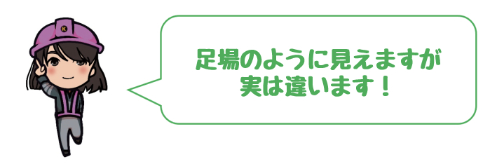 足場とは足を置く場所を確保することにより高所や建物の外などの危険な場所でも、