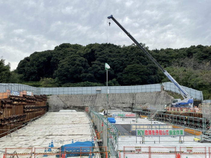 実は、この型枠支保工は曳家(ひきや)といって構造物をスライドさせて使っていくそうです。