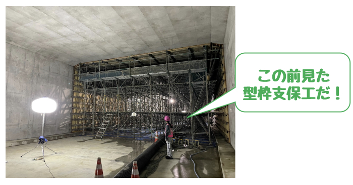 そこには型枠支保工はなくコンクリートでできたとても大きな空間が出来上がっていました!!スゴイ!!