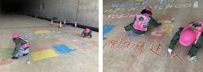 説明の後は、みんなでトンネル内にラクガキをしました🎨