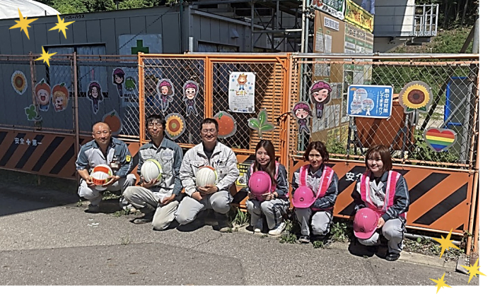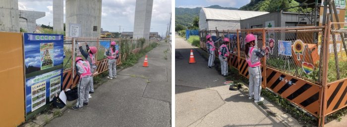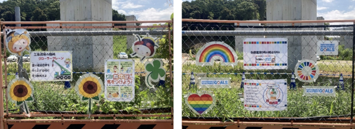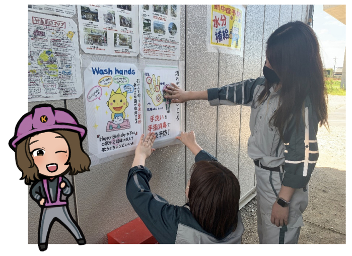 中には現場使用されている重機の紹介や熱中症対策、SDGsに関するポスターも貼り付けました🌞