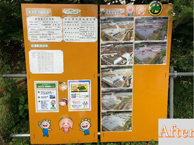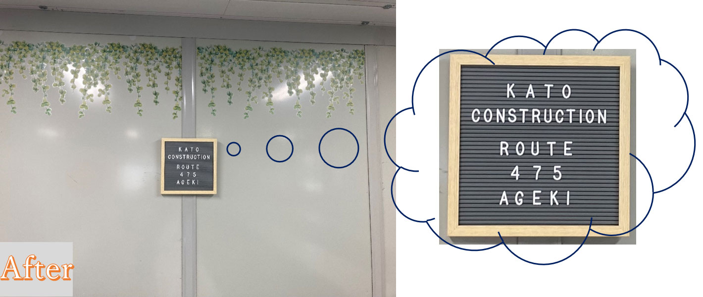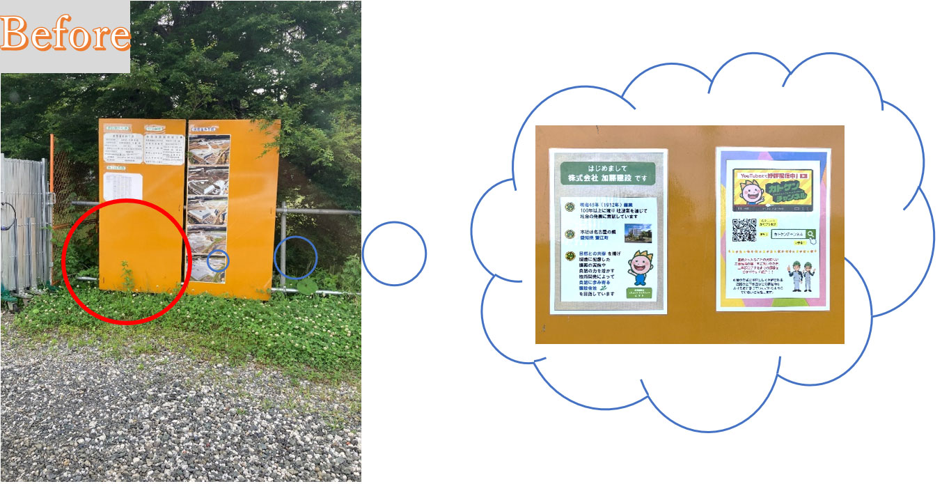 事務所入り口の掲示版にスペースがあったので、加藤建設に関する情報をラミネートして貼りました!!