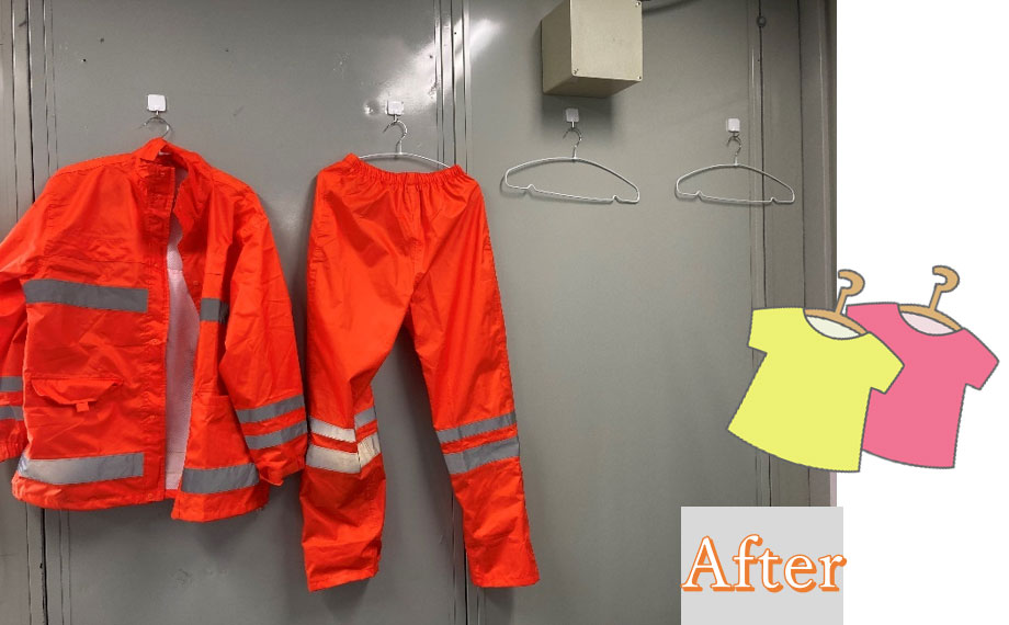 見た目が良くないので、カッパやジャケット等を掛ける場所を作りました!